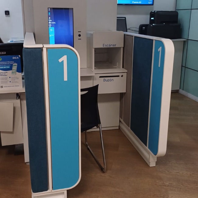 En un acuerdo con una empresa proveedora de soluciones de software, impulsamos el proyecto para un sistema integral para OCA, para la atención medidante video y audio en terminales específicamente diseñadas para sus sucursales. Con esta solución, la atención virtual permite que un cliente pueda recibir impresiones, escanear y depositar documentos, como si estuviera frente a frente con un fundionario. Administramos todo el hardware de forma remota para generar asistencia inmediata ante cualquier evento.
